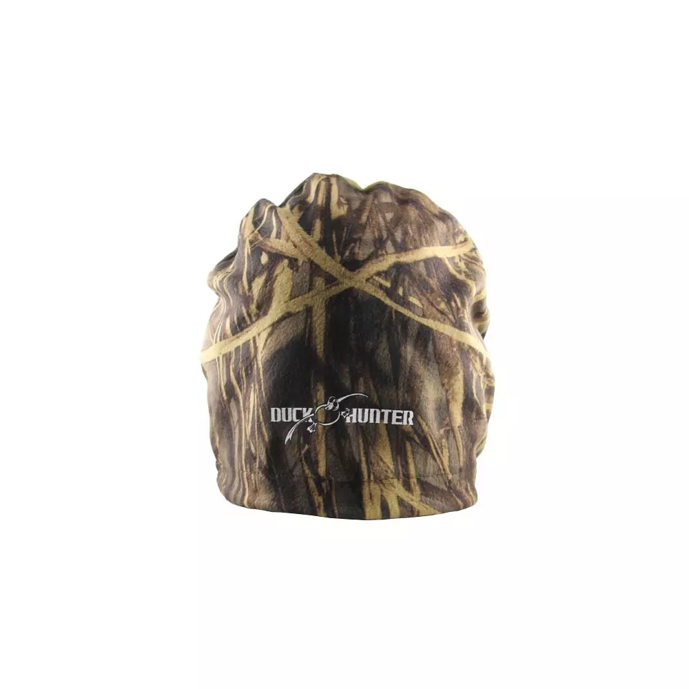 Bonnet polaire imprimé d’un motif de camouflage roseaux. Parfait dès l’automne. Taille unique.