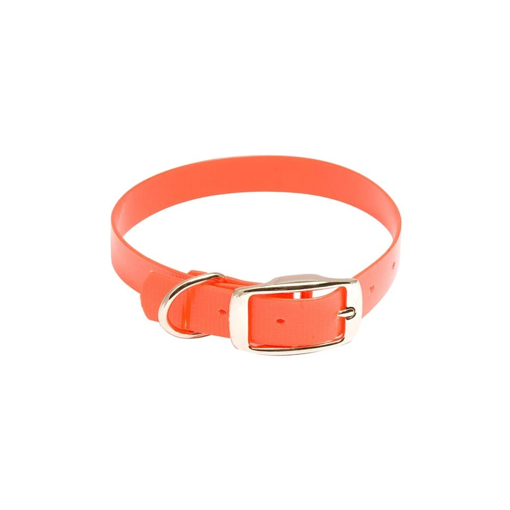 Collier pour chien de chasse Hiflex. Son aspect brillant fluo offre une grande visibilité à votre animal. Surface libre pour gravure.