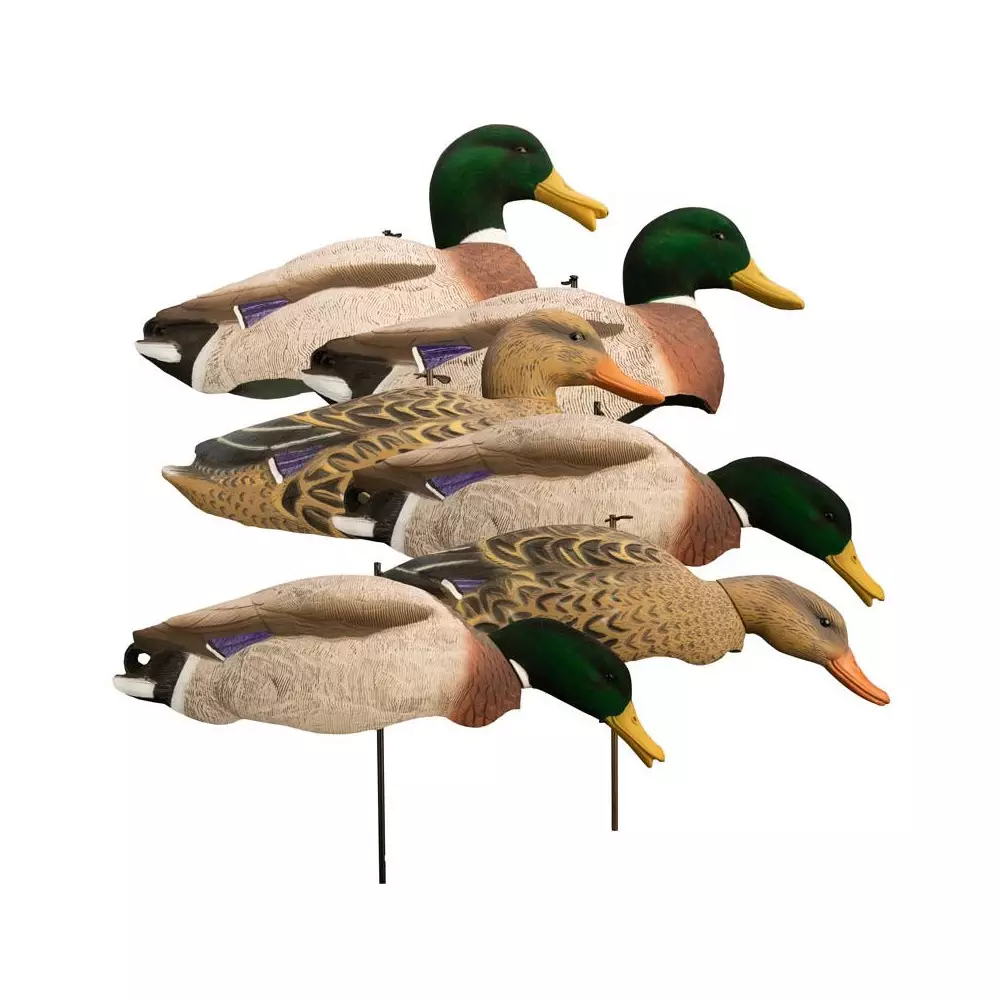 Faciles à transporter, légères et rapides à mettre en place, les coquilles de colvert Higdon n’en sont pas moins réaliste. La tête des blettes du mâle colvert sont recouvertes d’un flocage qui empêche de briller au soleil tout en augmentant le réalisme. Les coquilles colvert sont fournies avec un piquet à planter. Les formes peuvent être empilées les unes sur les autres pour le transport. Le pack est constitué de 6 blettes : 4 mâles et 2 femelles aux attitudes variées.