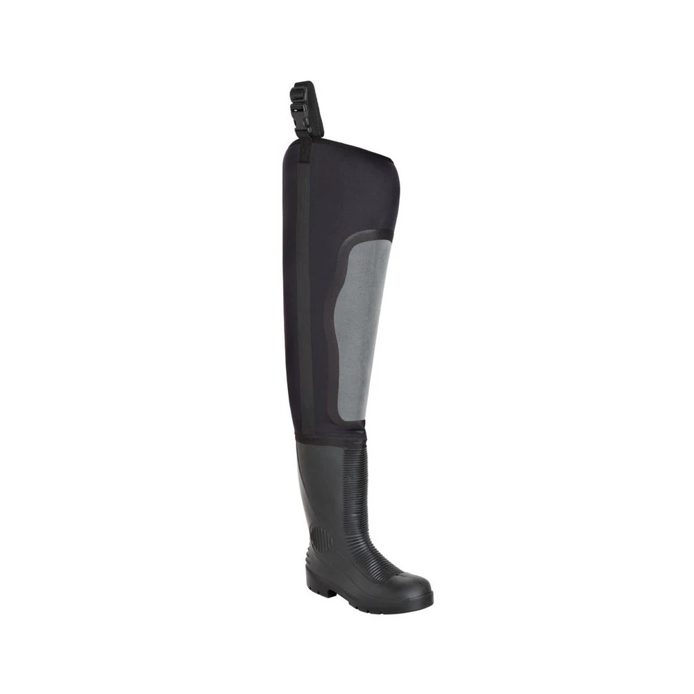 Cuissardes légères et confortables, parfaites pour vos chasses à la botte. Conçues en néoprène de 4 mm d’épaisseur, elles offrent une très bonne isolation thermique, améliorée avec un revêtement PU sur le chaussant, permettant de résister à des températures allant jusqu’à -20°C. Grâce au procédé de thermo-soudure, ces cuissardes résisteront aux aléas du temps. Elles disposent de renforts aux genoux ainsi que d’une attache ceinture élastique. La semelle des bottes est antidérapante et antistatique. L’intérieur de ces cuissardes est recouvert de coton respirant.