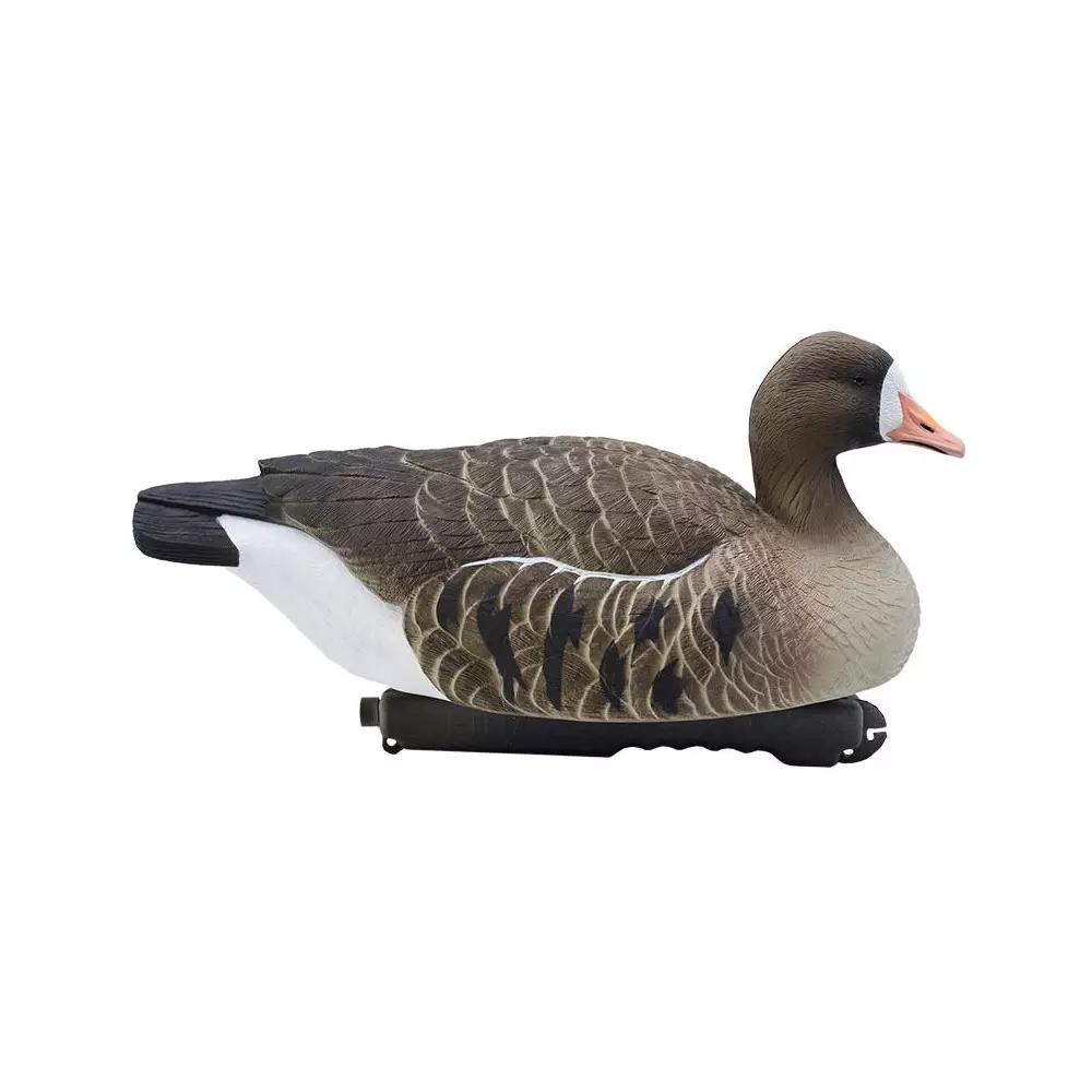 Une immense attention a été portée au moindre détail du plumage de l’oie rieuse. Les barres latérales noires, le bec rosé, les différents tons du marron au beige sur le dos, sont autant de détails reproduits sur la blette d’oie rieuse flottante. L’excellente tenue sur l’eau, qui imite parfaitement un oiseau au calme, est le résultat d’une quille étudiée à la forme particulière.