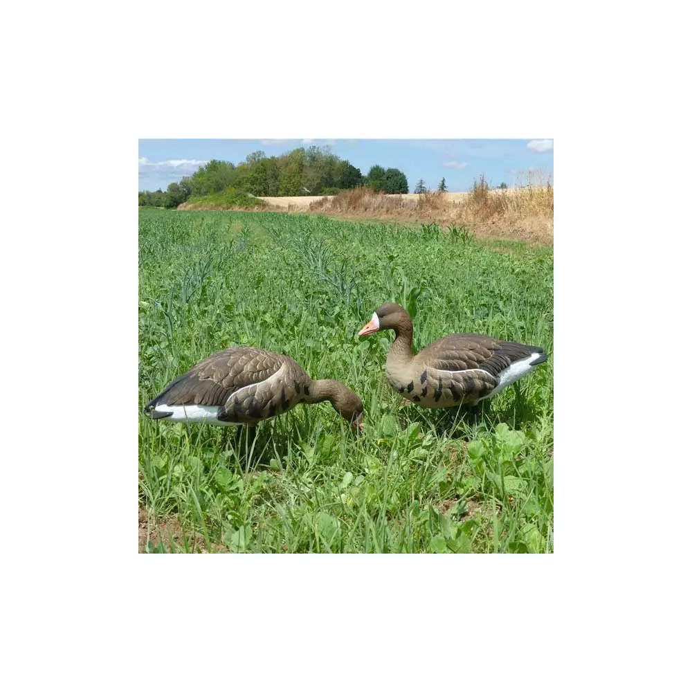 Installées dans l’eau ou sur les berges, les formes d’oie sur pattes seront un véritable atout dans votre attelage. Elles offrent davantage de visibilité qu’une blette flottante grace à leur représentation du corps entier d’une oie. Tous les détails du plumage d’une oie rieuse ont été reproduit avec une grande fidélité. Une attention particulière a été portée à la durabilité de la peinture. Le pack de formes d’oie rieuse sur pattes Final Approach est constitué de 6 formes : 2 actives et 4 mangeuses. Les blettes sont fournies avec des piquets en fibre de verre qui leur offre mobilité au vent.