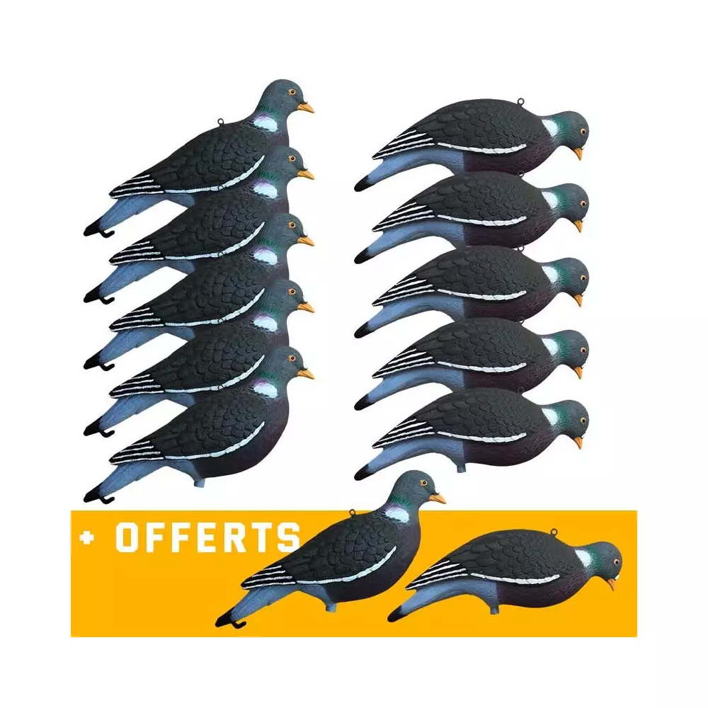 Le pack de 10 blettes Vision Pigeon est constitué de 5 mangeurs et 5 actifs + 2 offertes. Les formes sont livrées avec leur piquet.