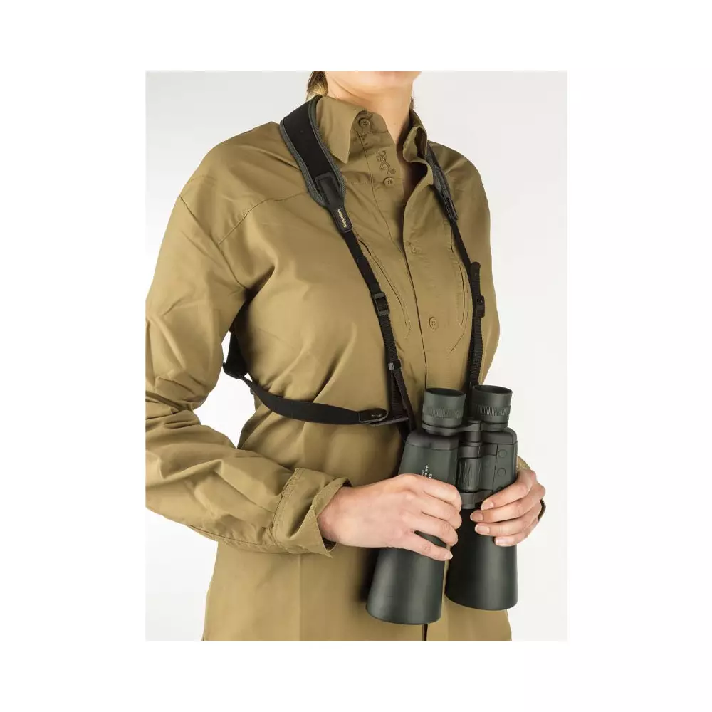 Pour vos chasses à l’approche ou simples randonnées en nature, ce harnais permet de garder vos jumelles à portée de mains tout en offrant un confort optimal. Grâce à sa conception, le harnais permet une meilleure répartition de la charge des jumelles sur le dos et les épaules et non plus sur la nuque et les cervicales. Il évite également aux jumelles de se balancer de gauche à droite lors des déplacements. Le harnais s’adapte à toutes les jumelles et utilisateurs grâce à ses multiples réglages.