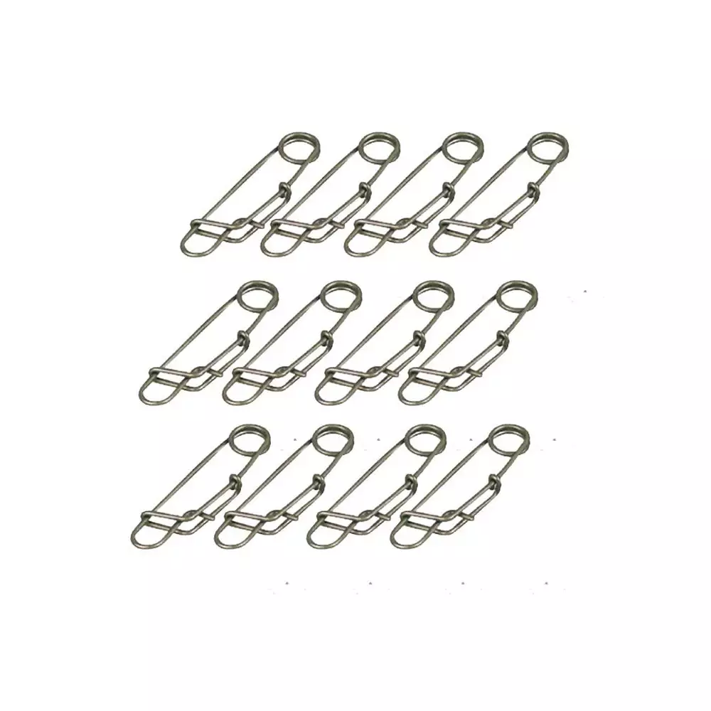 Pack de 12 épingles automatiques grand modèles pour l’attelage de vos appelants. Epingles résistantes conçues en inox.