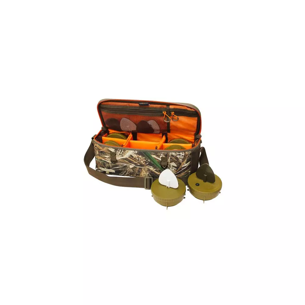 Sac de transport doté de 6 compartiments spécialement conçu pour transporter les appelants motorisés Mojo Flock a Flicker. Sac imprimé du motif de camouflage Realtree Max5.