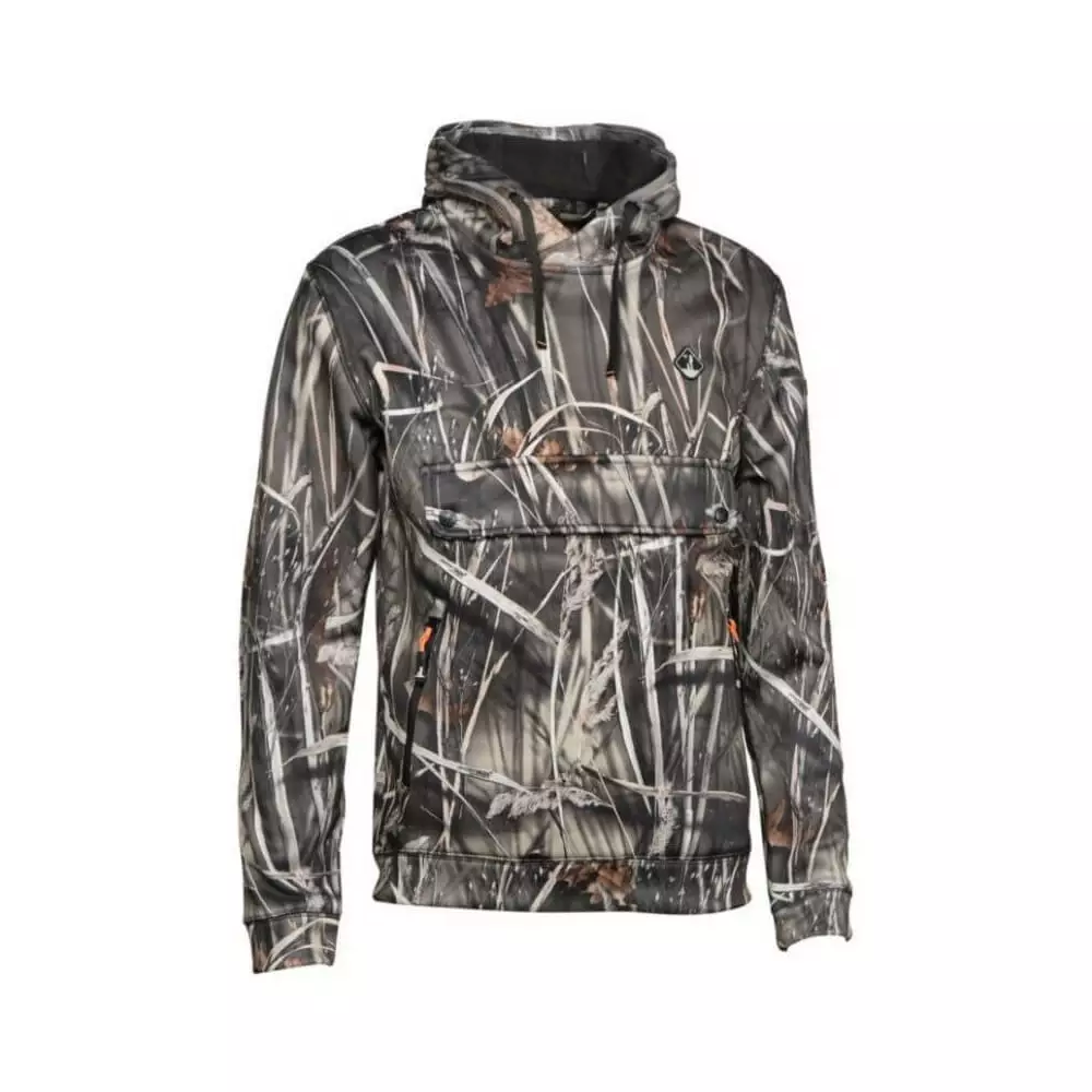 Sweat pour enfant imprimé du motif de camouflage roseaux Ghost Wet. Le sweat est équipé d’une large poche ventrale ainsi que de deux poches zippé. Il est doté d’une capuche ajustable à l’aide de cordons de serrage. L’intérieur du sweat dispose d’une doublure polaire.