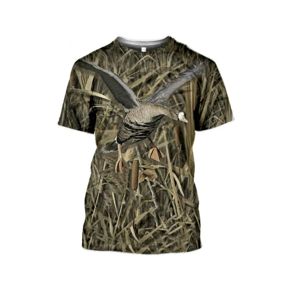 Tee-shirt camouflage imprimé d’une oie rieuse à effet 3D.