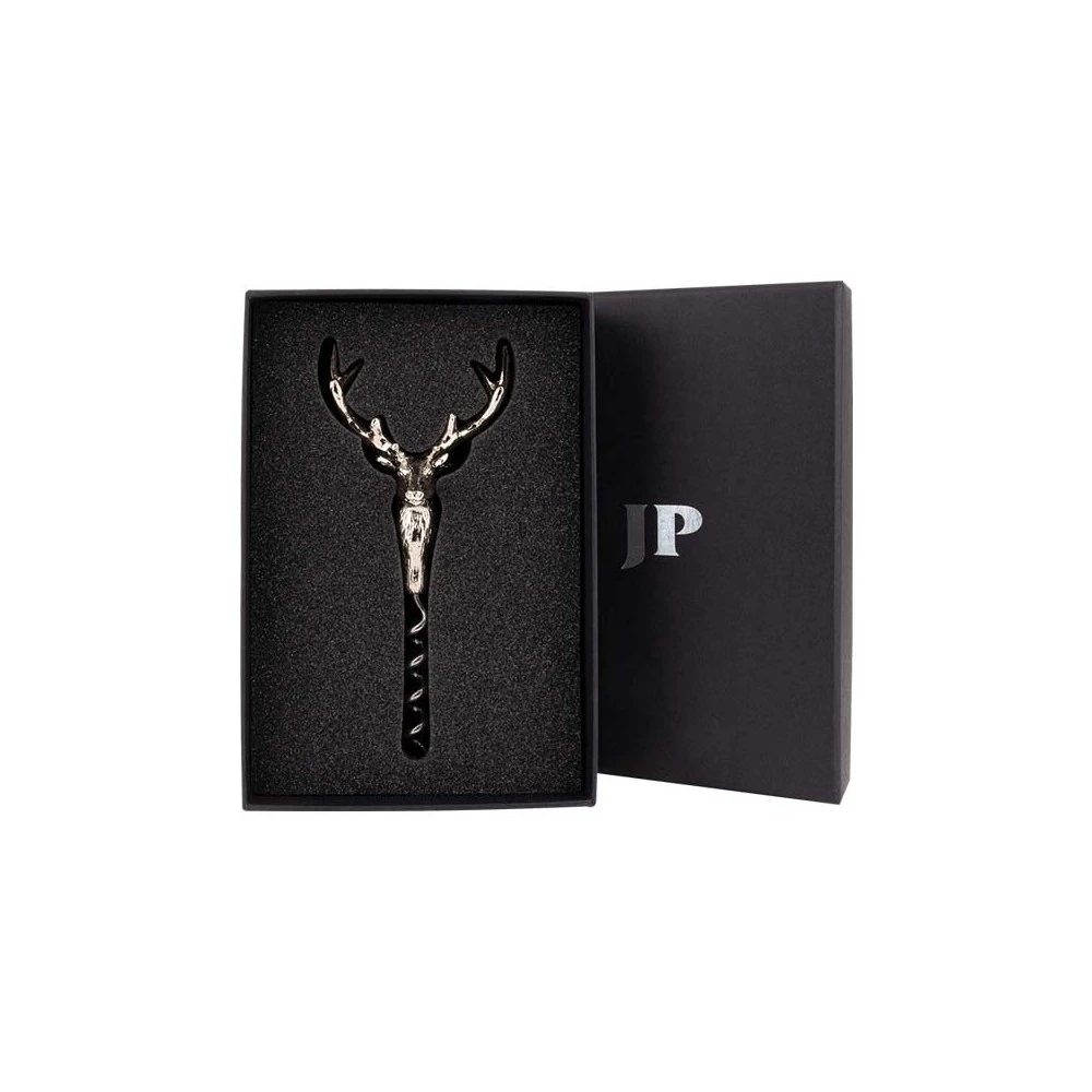 Tire-bouchon en acier nickelé représentant un cerf. Hauteur : 14 cm. Livré dans une boite esthétique.