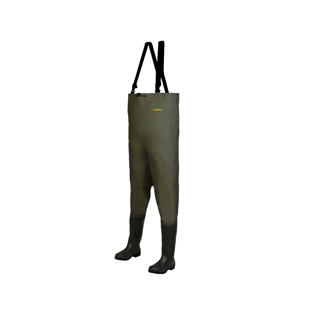 Waders kaki conçues en PVC Plavitex souple, fin et résistant. L’intérieur est revêtu en coton respirant. Bretelles réglables et élastiques avec clips. Toutes les coutures sont réalisées par soudure haute fréquence. Semelles en PVC moulé avec crampons autonettoyants. Couleur kaki.